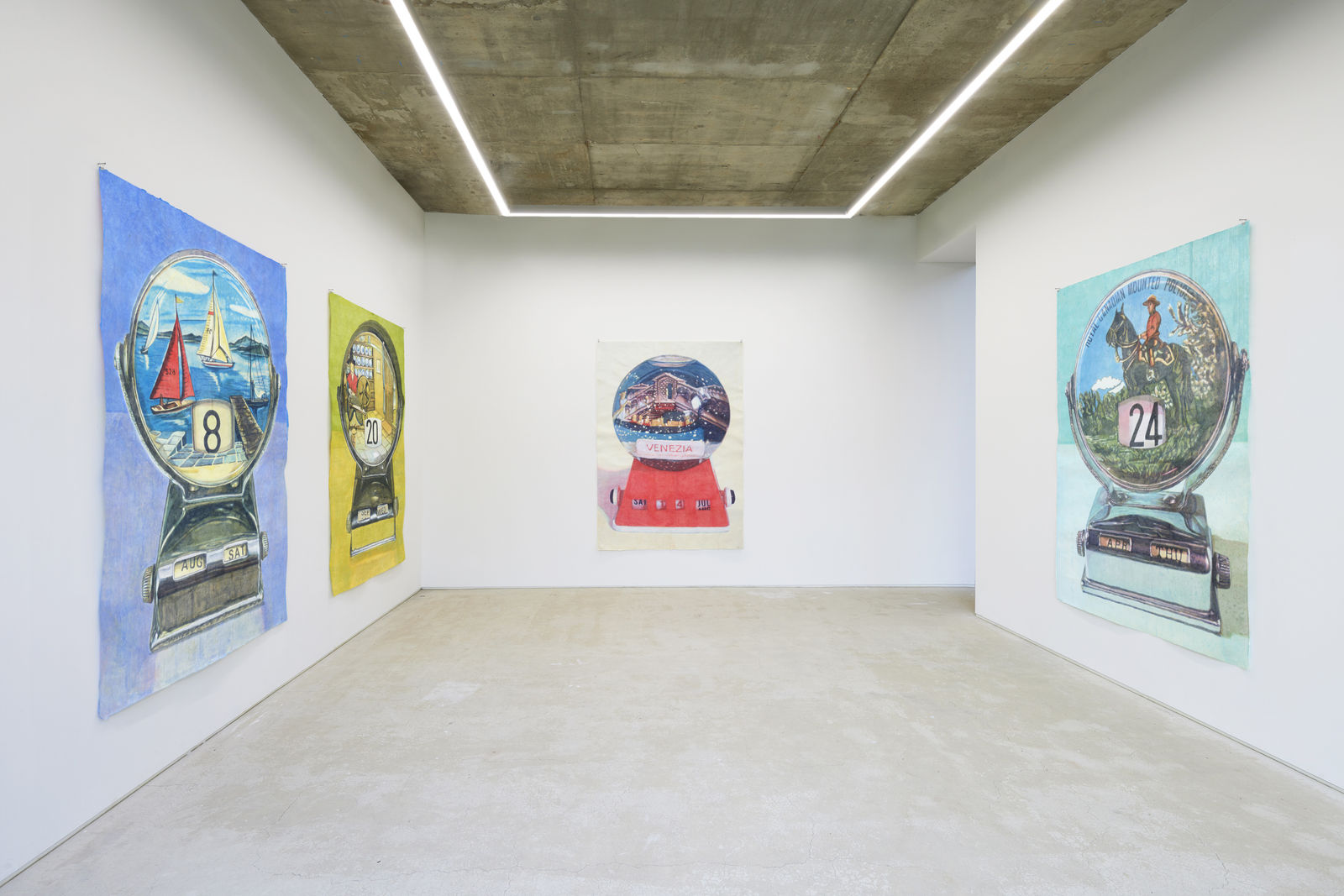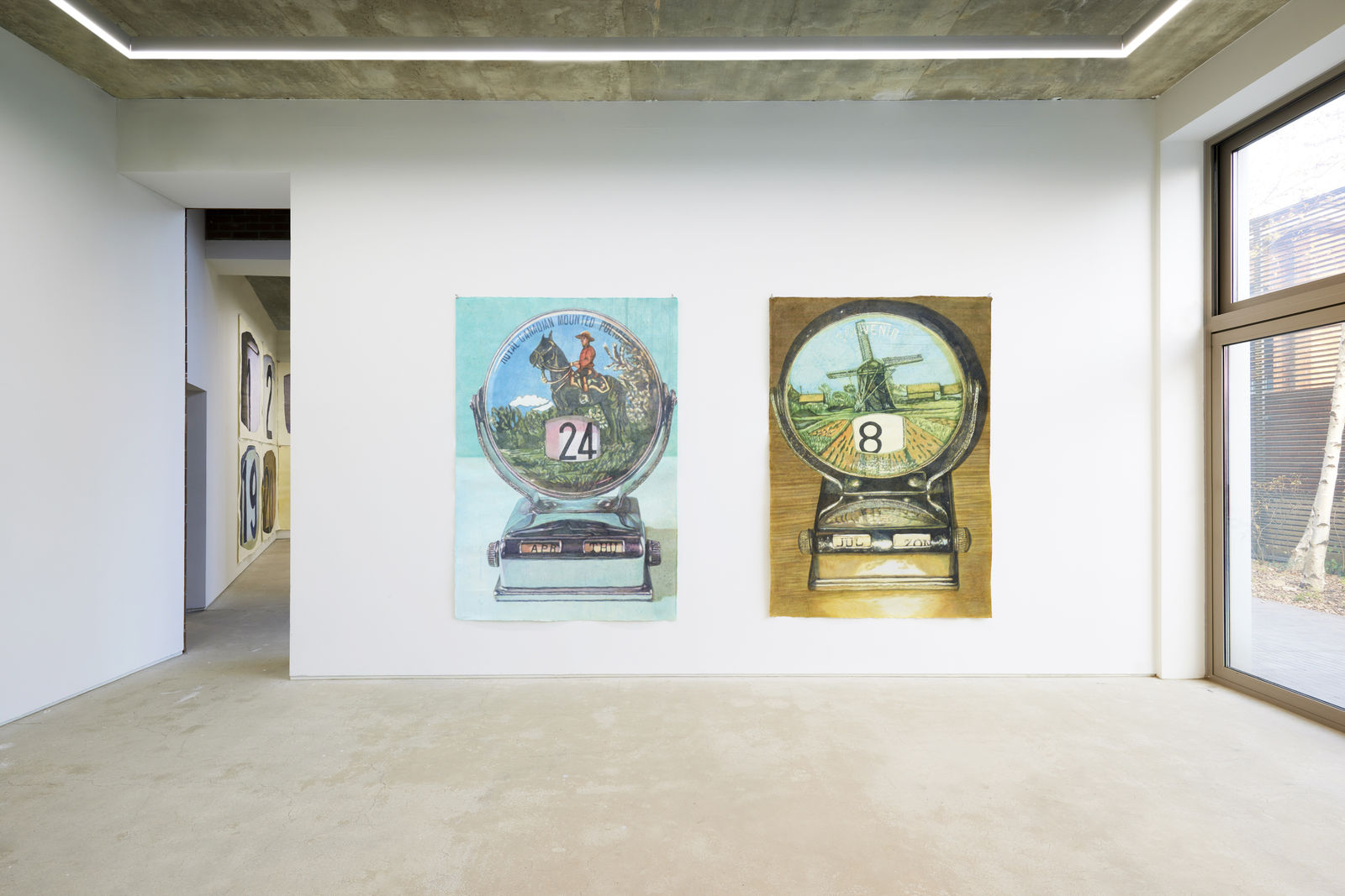 작가는 지인의 차에서 퍼페추얼 캘린더를 우연히 발견한다. 다이얼을 돌려 월과 요일을 설정하는 이 작은 탁상용 캘린더를 보고 그는 시간을 조작할 수 있다는 점이 흥미로웠다고 한다. 그리고 캘린더에 그려진 이국적인 풍경 역시 그의 눈길을 끌었다. 퍼페추얼 캘린더는 여러 형태가 있지만, 유독 작가의 관심을 끈 것은 월과 요일을 다이얼로 돌릴 수 있는 하단과 각 나라의 랜드마크와 날짜를 보여주는 원형 구조가 결합된 캘린더이다. 이것은 1960년대부터 80년대까지 서양에서 유행했던 여행기념품이었다. 오늘의 날짜를 표시하는 달력이면서 또한 과거의 시간을 회상하고 기억할 수 있는 기념물인 것이다. 여러 의미로 해석될 수 있는 이 사물을 보고 작가는 오랜만에 그려보고 싶은 소재를 찾은 것 같았다고 말한다.