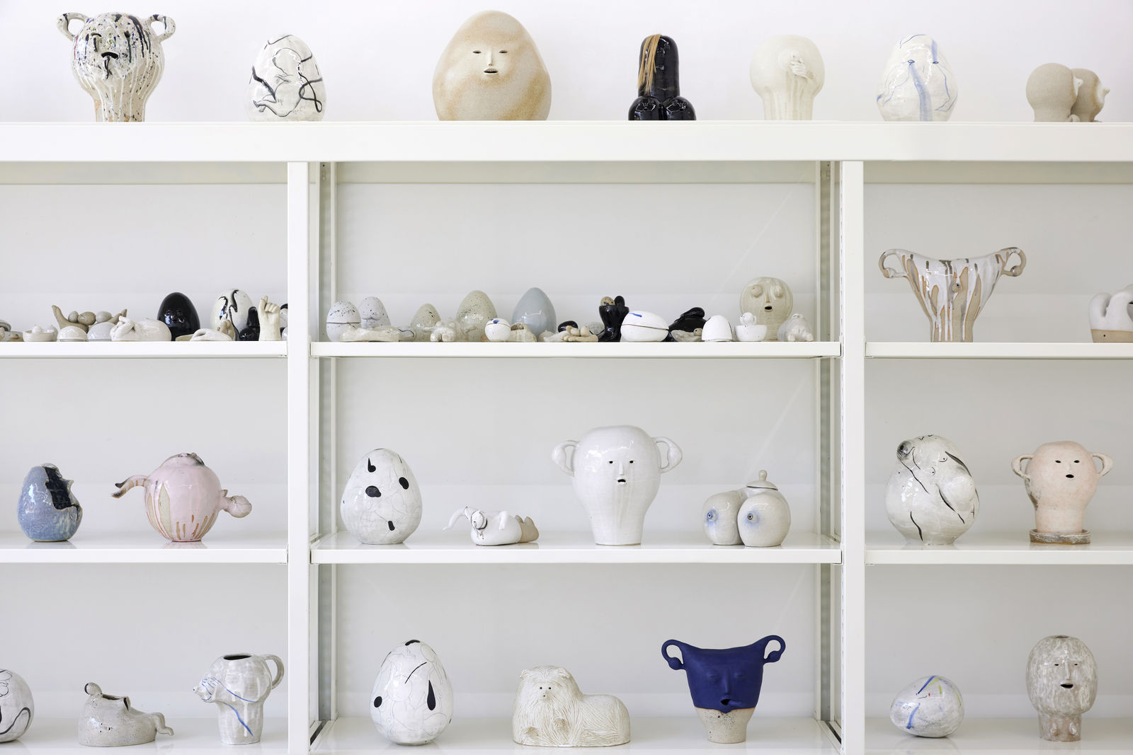 The earthenware takes various related forms: pregnant mother’s body, uterus, fetus, lactating breasts, and an egg. To Park, a pregnant abdomen looked like an egg. Eggs have become a symbol of the life within, as well as a metaphor for gestation and being carried to term. The earthenware are supplément to pregnancy. Suppléments provide something necessary as substrates to our desire, but it is not subject of desire itself. That is, supplément means there is something wanting. And it is in wanting where imagery is born. As the artist struggled with the failure to conceive, she crafted one or two earthenware each week to shake off the looming anxiety and wish for auspiciousness. Her earthenware are objects that intricately combine play and earnestness, ambivalently blending hope and sorrow, esoteric ecstasy and anxiety, joy and sorrow.