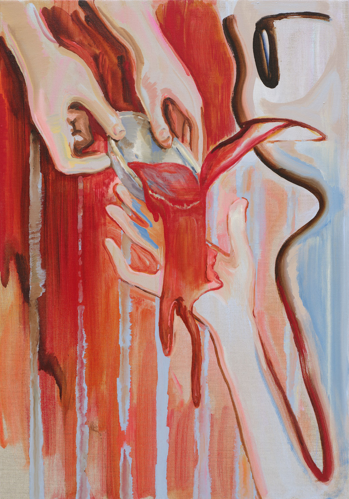 Anecdotes, mishaps, and even the mundane experiences that caused a shift in the artist’s inner person have long been the moments that Lee has tried to capture on canvas. Those subversive and uncanny moments captured her interest, and she extrapolated upon them, and took them further in her imagination. The artist likens her paintings to a soliloquy. Like self-utterance, her works are often enigmatic and not immediately decipherable, but they also work to check and balance her practice from falling into some narrow corridor or branch. If there is one thing that her latest exhibition brings to her practice is a shift to objects rather than situations or characters.